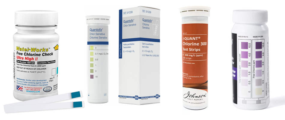 แถบทดสอบคลอรีนเหมาะสำหรับการวัดความเข้มข้นของสารฆ่าเชื้อคลอรีนที่มีความเข้มข้นสูงอย่างรวดเร็ว ซึ่งส่วนใหญ่ใช้ในอุตสาหกรรมอาหาร บนแถบทดสอบความเข้มข้นของคลอรีนจะถูกวัดแบบกึ่งปริมาณโดยการเปรียบเทียบพื้นที่ปฏิกิริยาของแถบทดสอบกับขอบเขตของสเกลสี