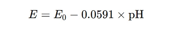 ซึ่งหมายความว่าสำหรับการเปลี่ยนแปลงค่า pH ทุกหน่วย ศักย์ไฟฟ้าจะเปลี่ยนไปประมาณ 59.1 มิลลิโวลต์