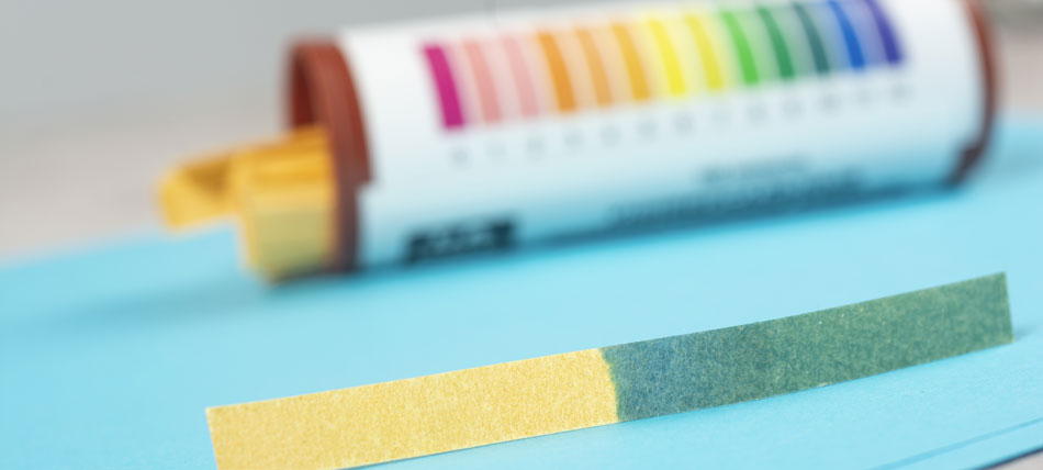 - หยดอินดิเคเตอร์ pH ลงไปสองสามหยด หรือจุ่มแถบวัด pH ลงในตัวอย่าง