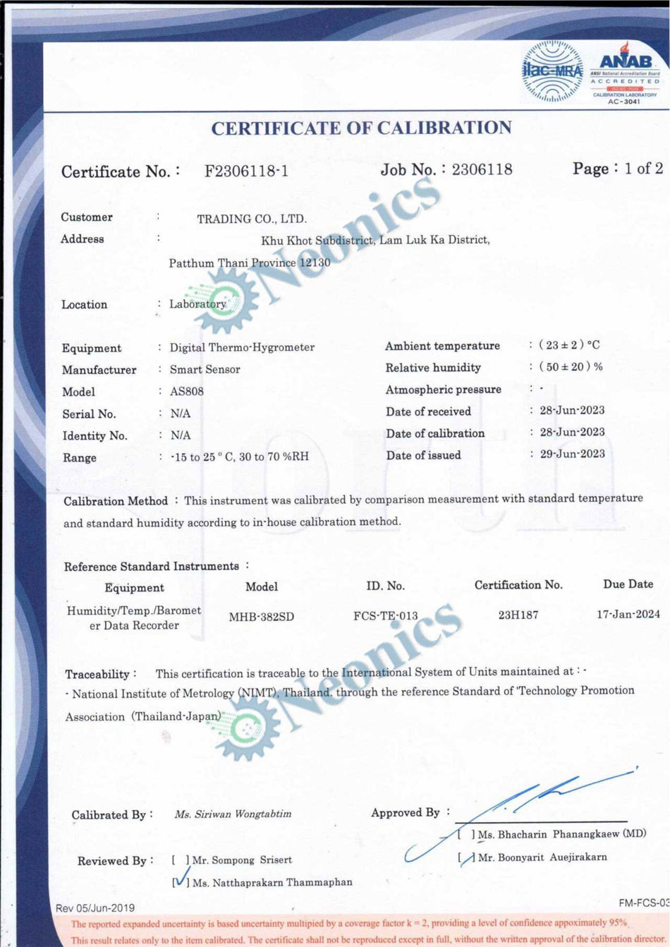 ตัวอย่างเอกสารรับรองการสอบเทียบเครื่องมือวัดอุณหภูมิเพื่อยืนยันความแม่นยำ